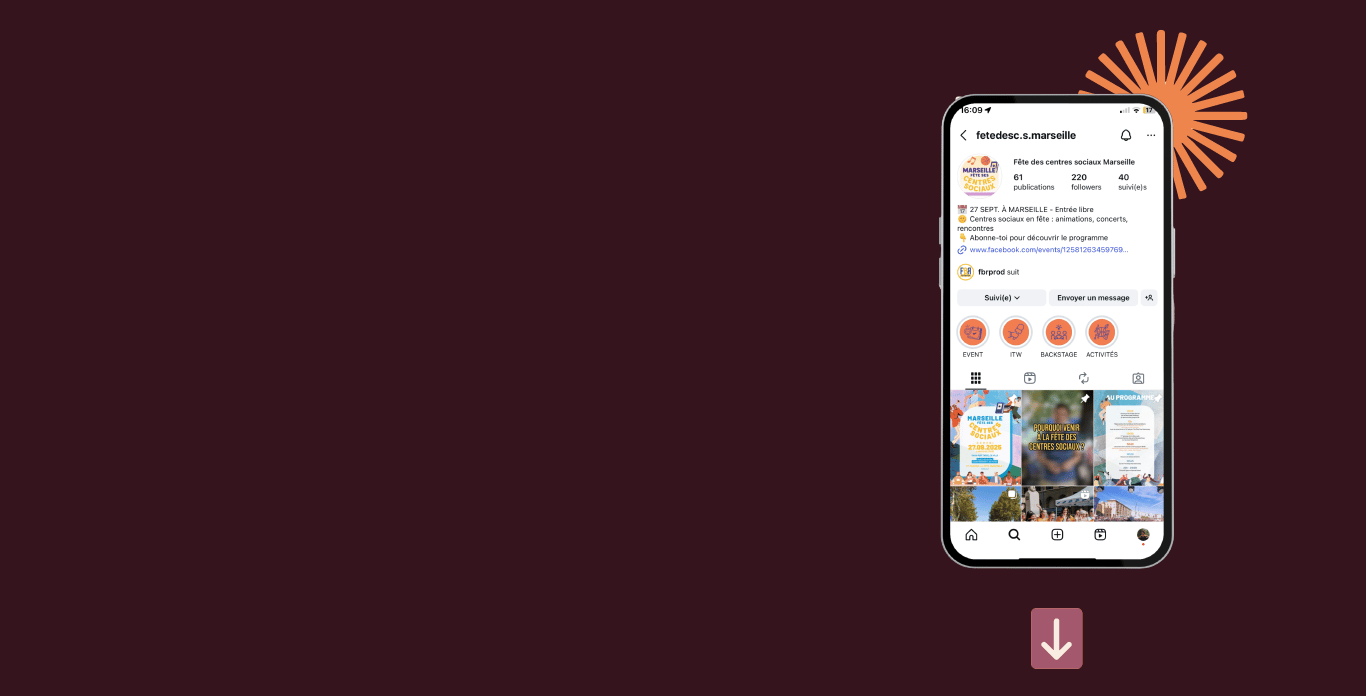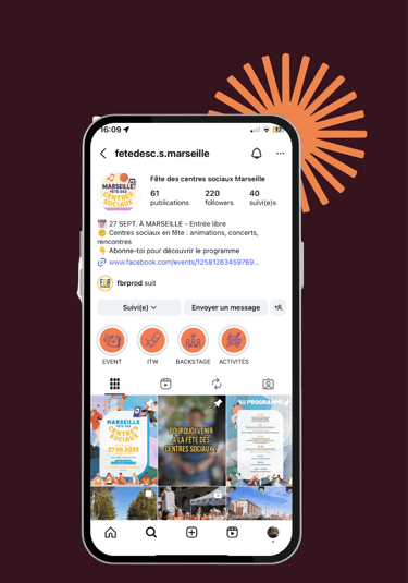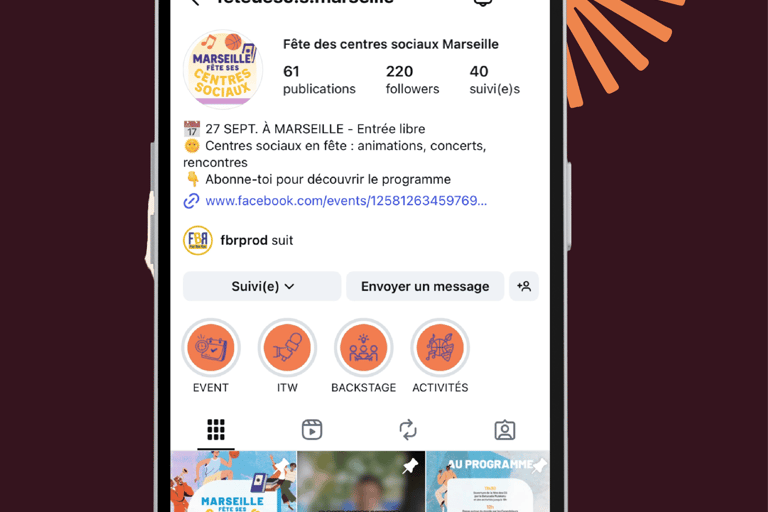Pour la Fête des Centres Sociaux de Marseille, j’ai conçu une stratégie social media globale en partant de zéro : création et lancement des comptes LinkedIn, Facebook, Instagram et TikTok, élaboration de l’identité éditoriale et production de contenus vidéo et photo.