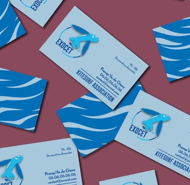 Le client : Exocet est une association de kitesurf pour les jeunes ne pouvant pas se le permettre. Son nom, inspiré du poisson volant, reflète l’univers du kitesurf et la sensation de voler sur l’eau, entre énergie, liberté et nature.