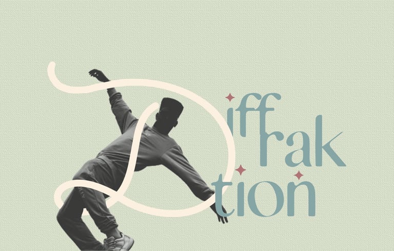 Le client : Diffraktion est bien plus qu’un spectacle de danse : c’est une pièce qui transmet bienveillance, énergie et poésie, avec une touche underground. L’identité graphique reflète cet univers : le D évoque le mouvement d’un danseur, les symboles au-dessus du i et du n ajoutent une dimension féérique, et la typographie sans serif aux bords arrondis incarne modernité, clarté et cohérence avec l’ensemble du visuel.