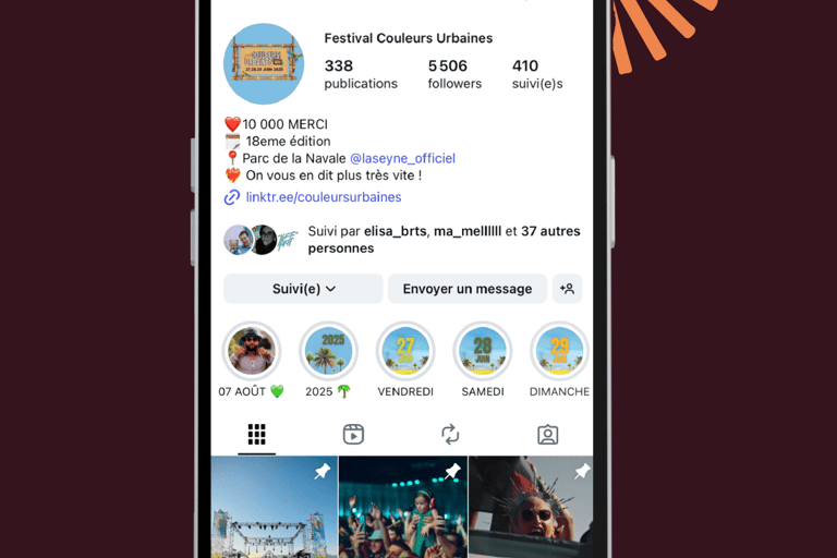 Le client : Depuis 2018, j’accompagne le Festival Couleurs Urbaines, organisé par Culture Plus, un événement musical emblématique à La Seyne-sur-Mer. Après y avoir fait mes débuts en stage, j’y collabore aujourd’hui en freelance depuis 2 ans sur la stratégie social media et la création de contenu.